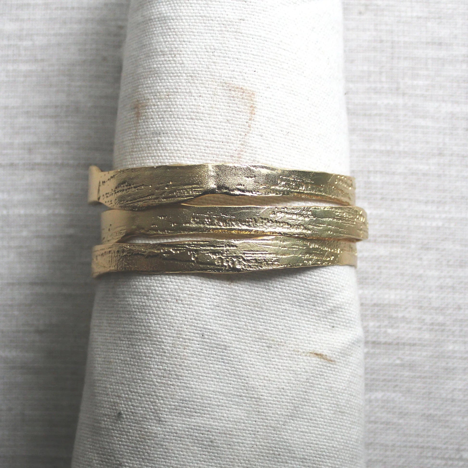 A beautifully etched bangle that adds texture and golden light to any stack. This bracelet blends timeless craftsmanship with a contemporary look. Lightweight, radiant, and perfect for layering or wearing as a single statement piece.