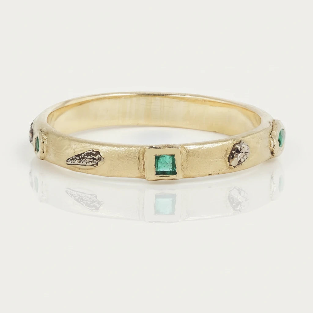 Each 3/4 Meta Ring is a study in contrast and color - combining hand-sculpted mixed metal accents with carefully chosen gemstones that wrap three-quarters of the way around the band.
