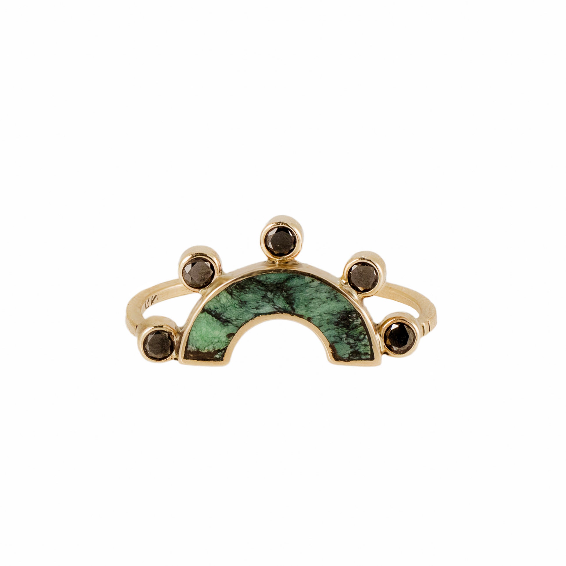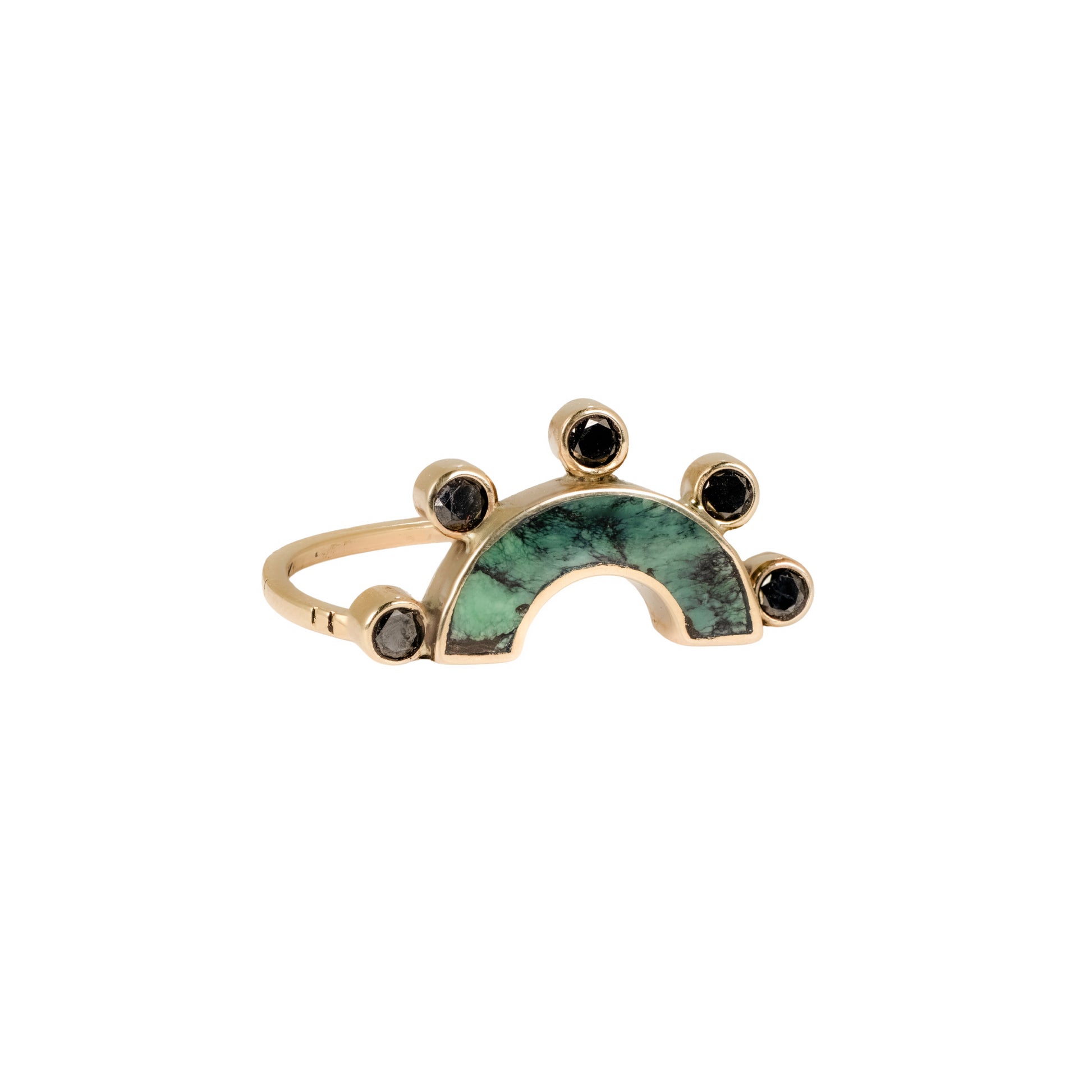 Small Arch Freya Crown Ring – 14k Gold with Mariposite & Black Diamonds