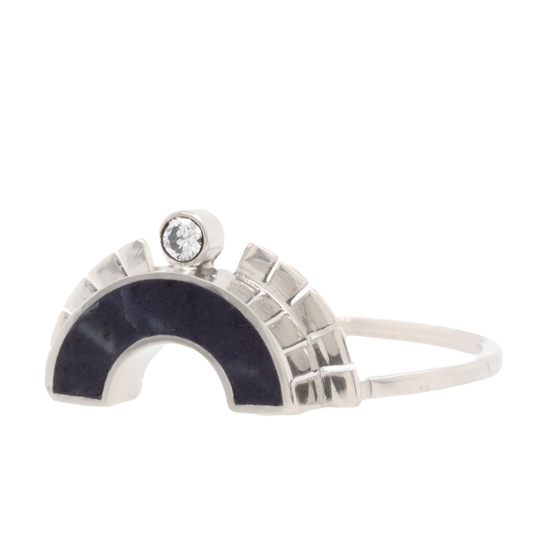 Small Arch Rising Sol Ring Crown – 14k White Gold with Burrow Creek Jasper & Diamond