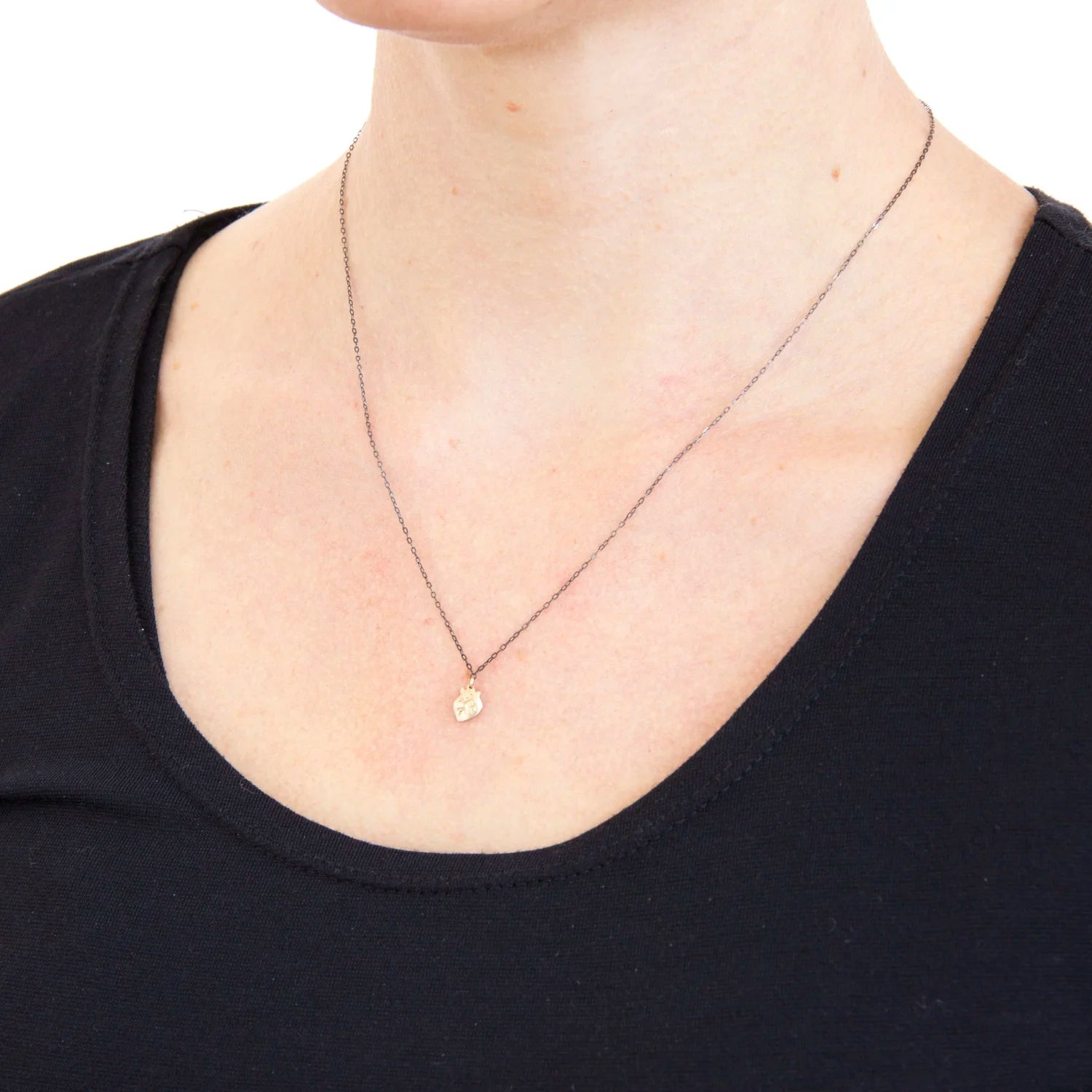 A delicate anatomical heart, crafted in 14k yellow gold, rests on a lightweight oxidized sterling silver chain. Designed by Luana Coonen, this piece pairs contrasting metals to create a subtle yet meaningful everyday necklace. Beautiful alone or layered with other favorites.