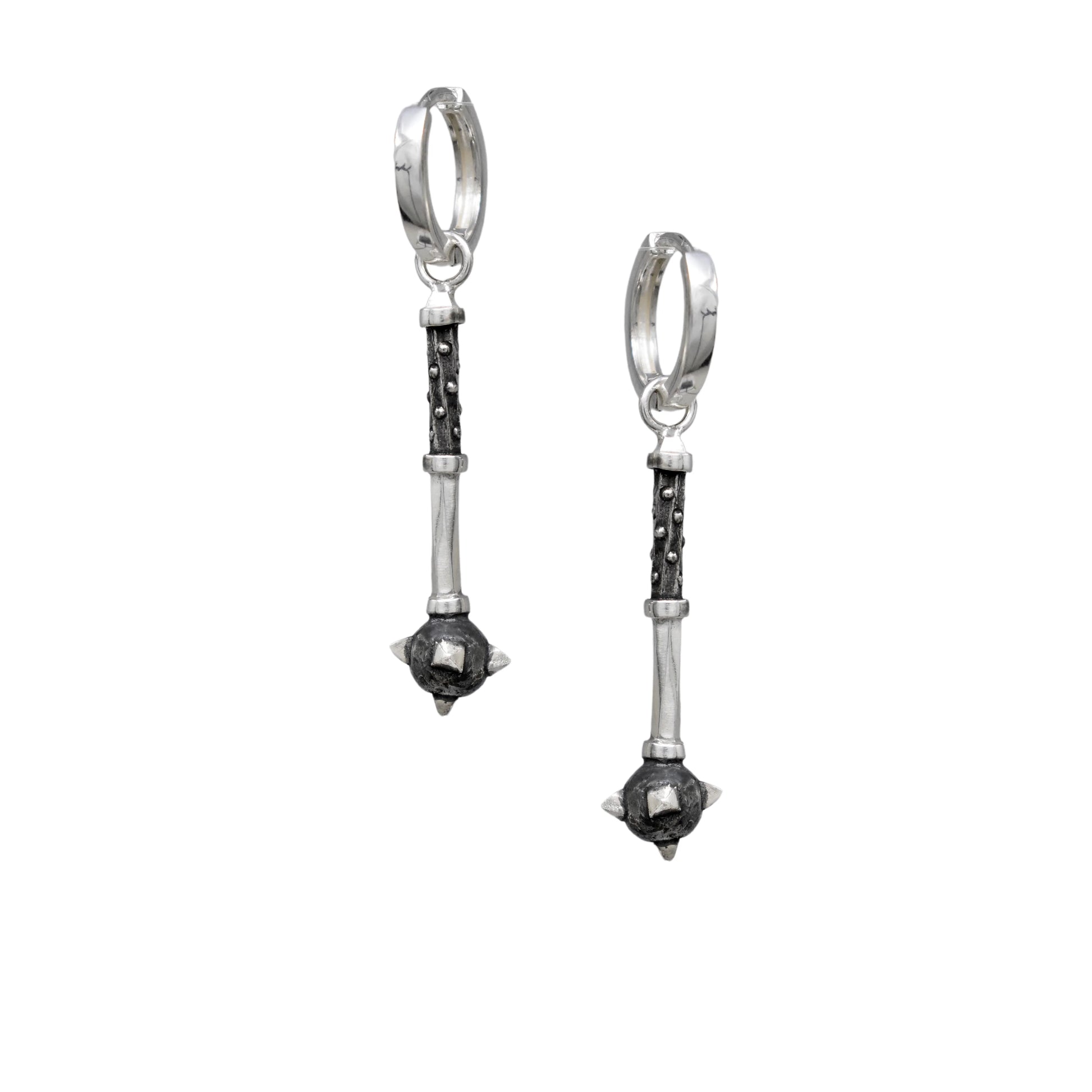 • Design: Polished huggies with oxidized Morningstar weaponry charm